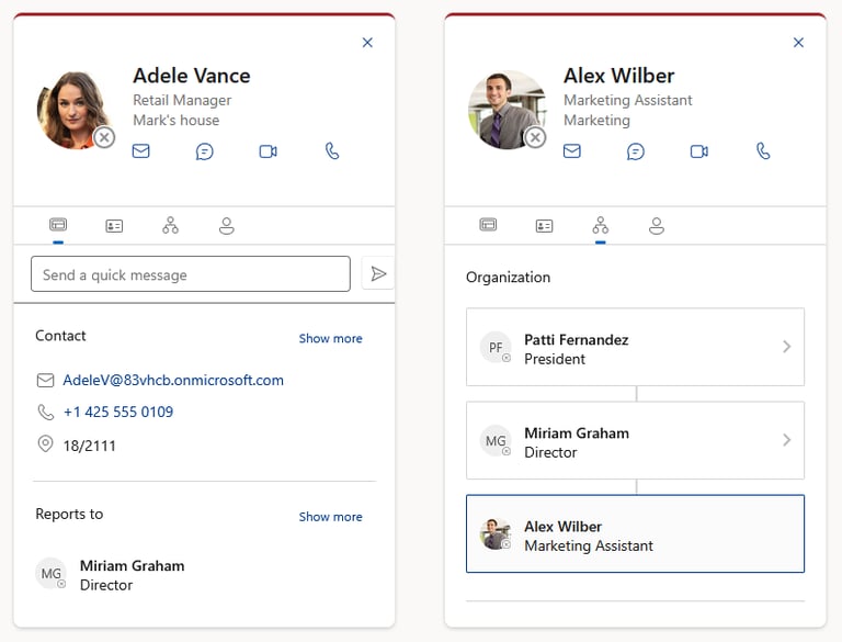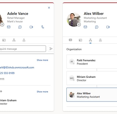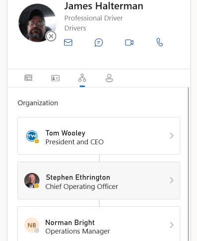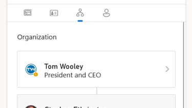 Visualize team structures with org chart associations on each employee's contact card.