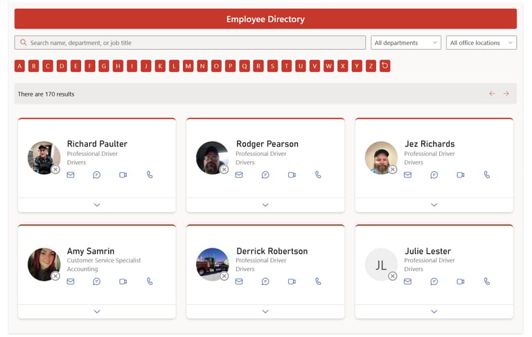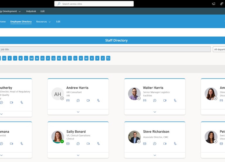 Our new Staff Directory SharePoint web part makes it easier than ever to find and connect with colleagues across your corporation. Built with Fluent UI controls, the directory feels familiar to anyone using Microsoft 365, providing a seamless and intuitive experience.